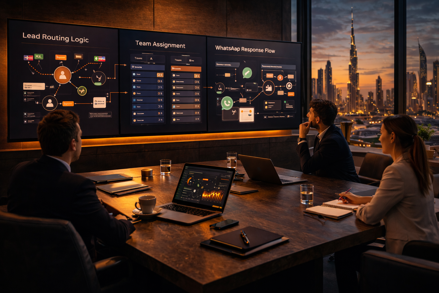 We help Dubai businesses turn WhatsApp into a structured lead-handling channel with routing, reminders, confirmations, Arabic and English follow-up logic and clearer internal visibility. The goal is not chat for the sake of chat. The goal is fewer missed enquiries, cleaner ownership and faster action after the first message.